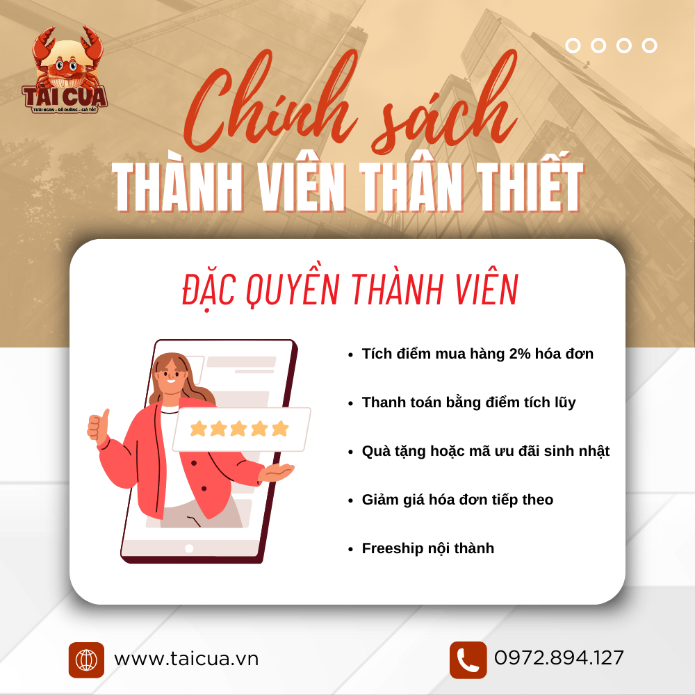CHÍNH SÁCH THÀNH VIÊN THÂN THIẾT được áp dụng cho các khách hàng có đăng ký tích điểm tại hệ thống online của TÀI CUA như sau: